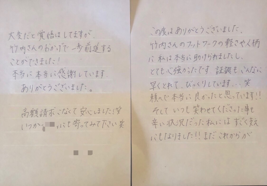 相談者様や依頼者様からのメッセージです。